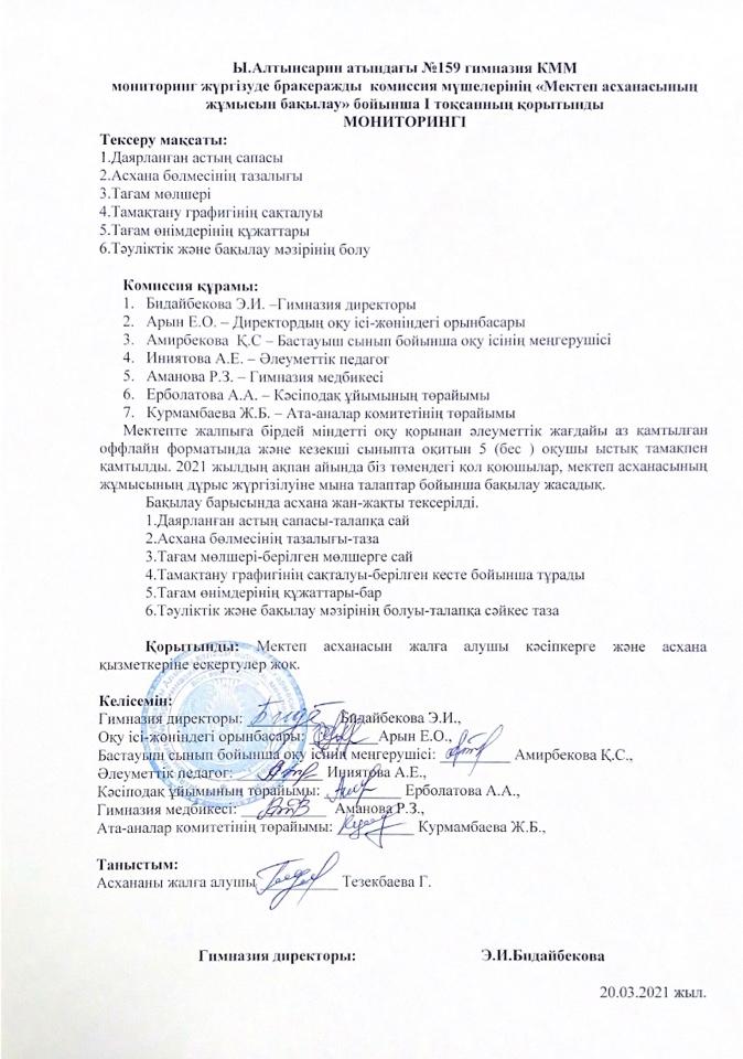 30 март 2021 Тамақтандыруды ұйымдастырудың сапасына жасалған І тоқсандық мониторинг 2021 Осы беттің QR-коды:QR-код этой страницы: