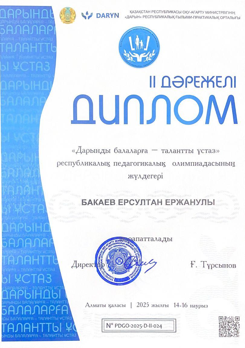Республикалық "Дарынды балаға- талантты ұстаз" атты байқауында гимназияның қазақ тілі мен әдебиеті пәні мұғалімі Бакаев Ерсултан жүлделі ll орынды иеленді. Құттықтаймыз!💐 @medeuaudany @ersulbakay