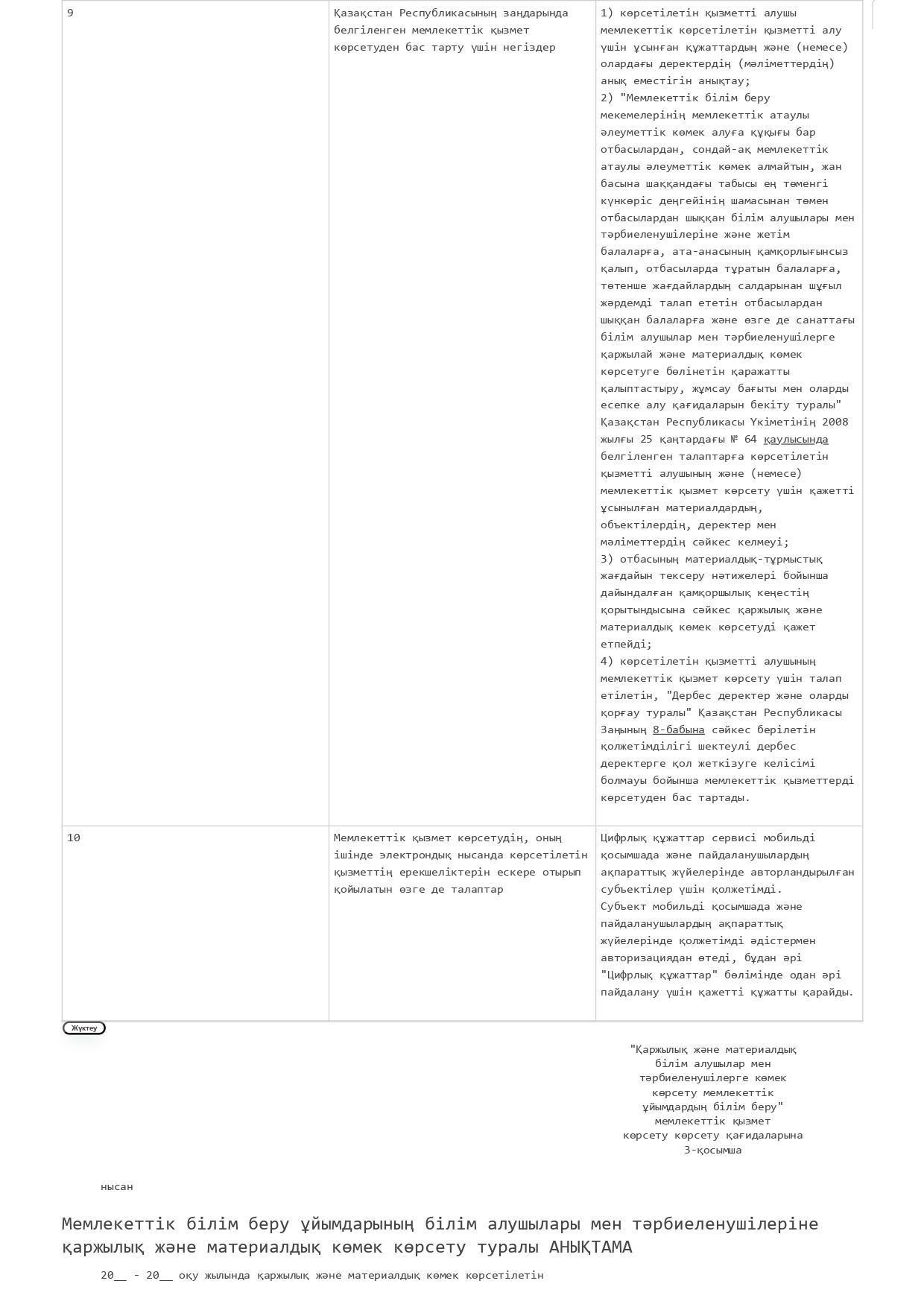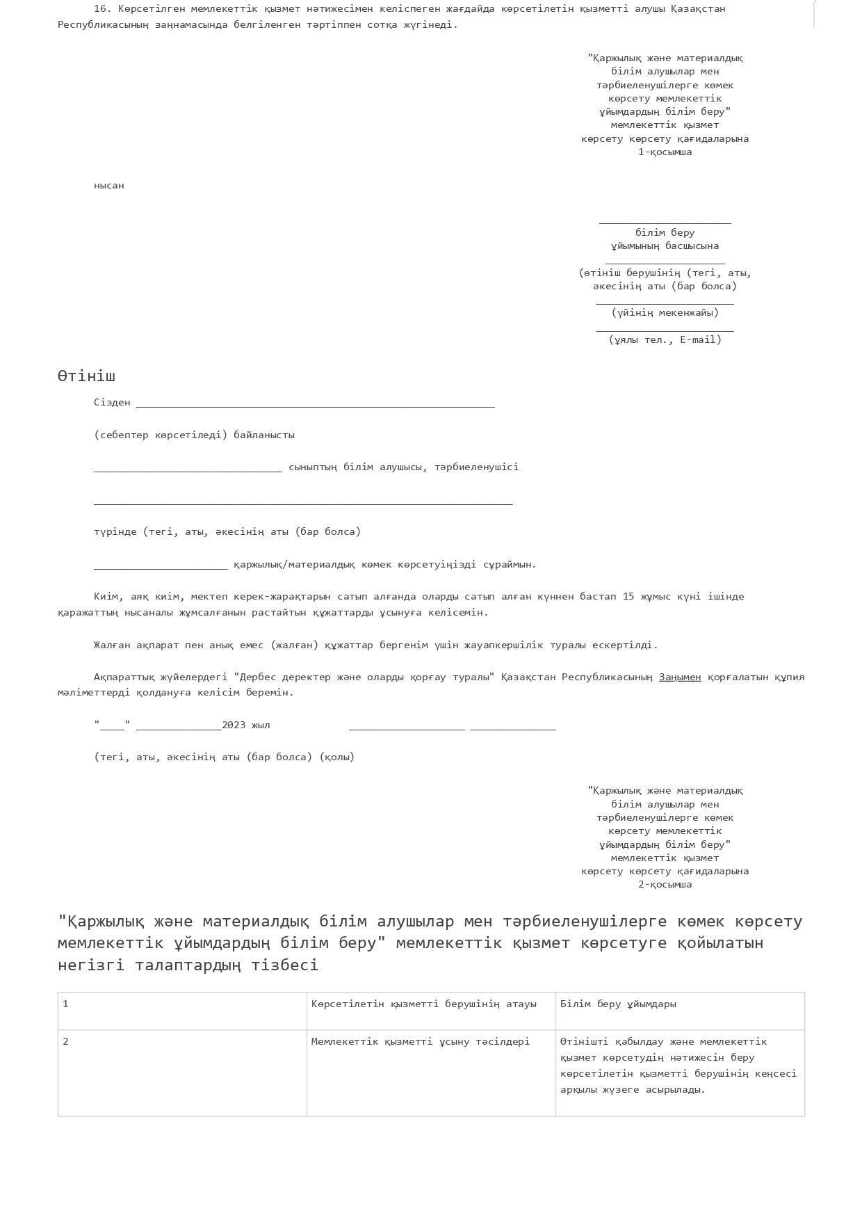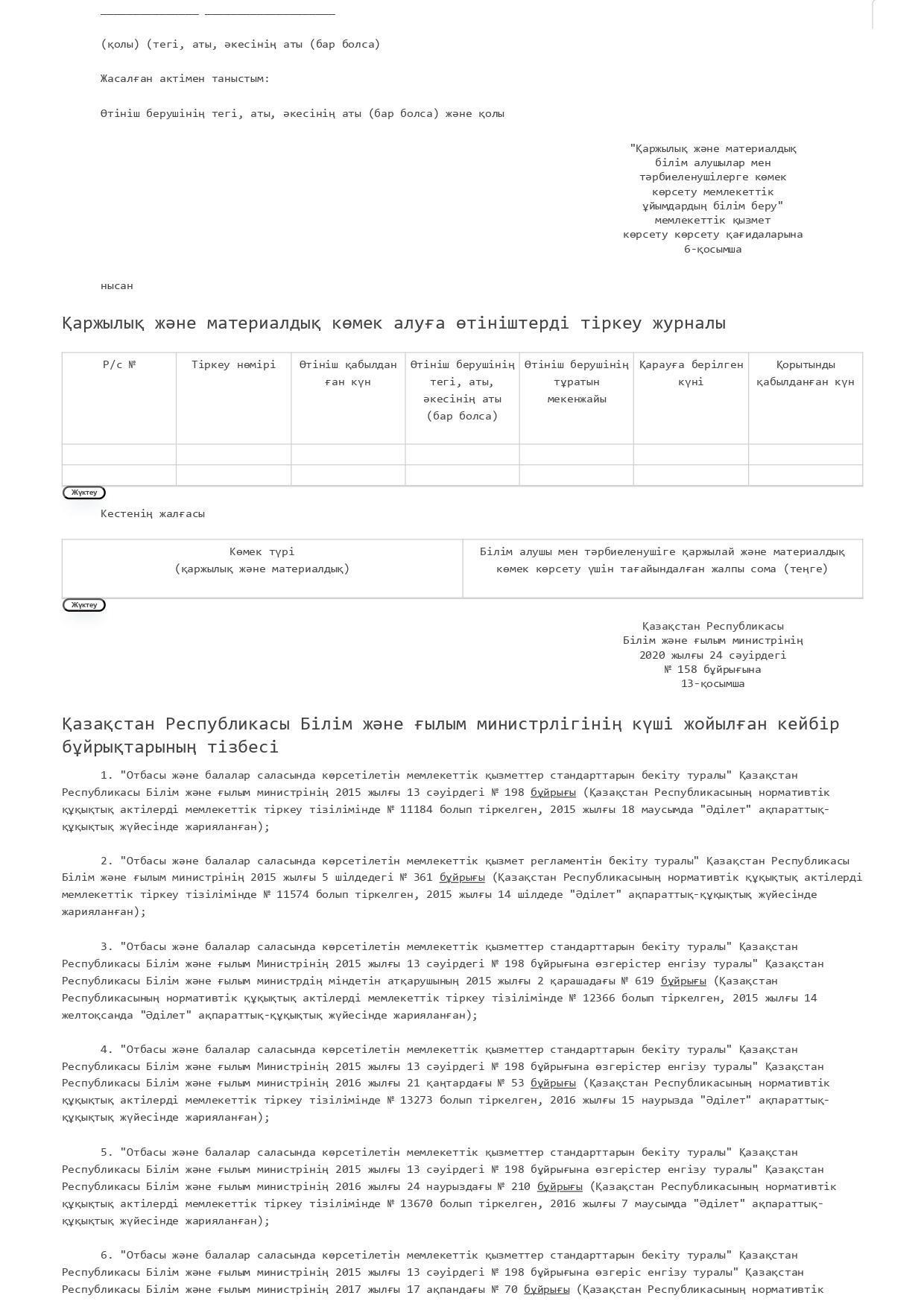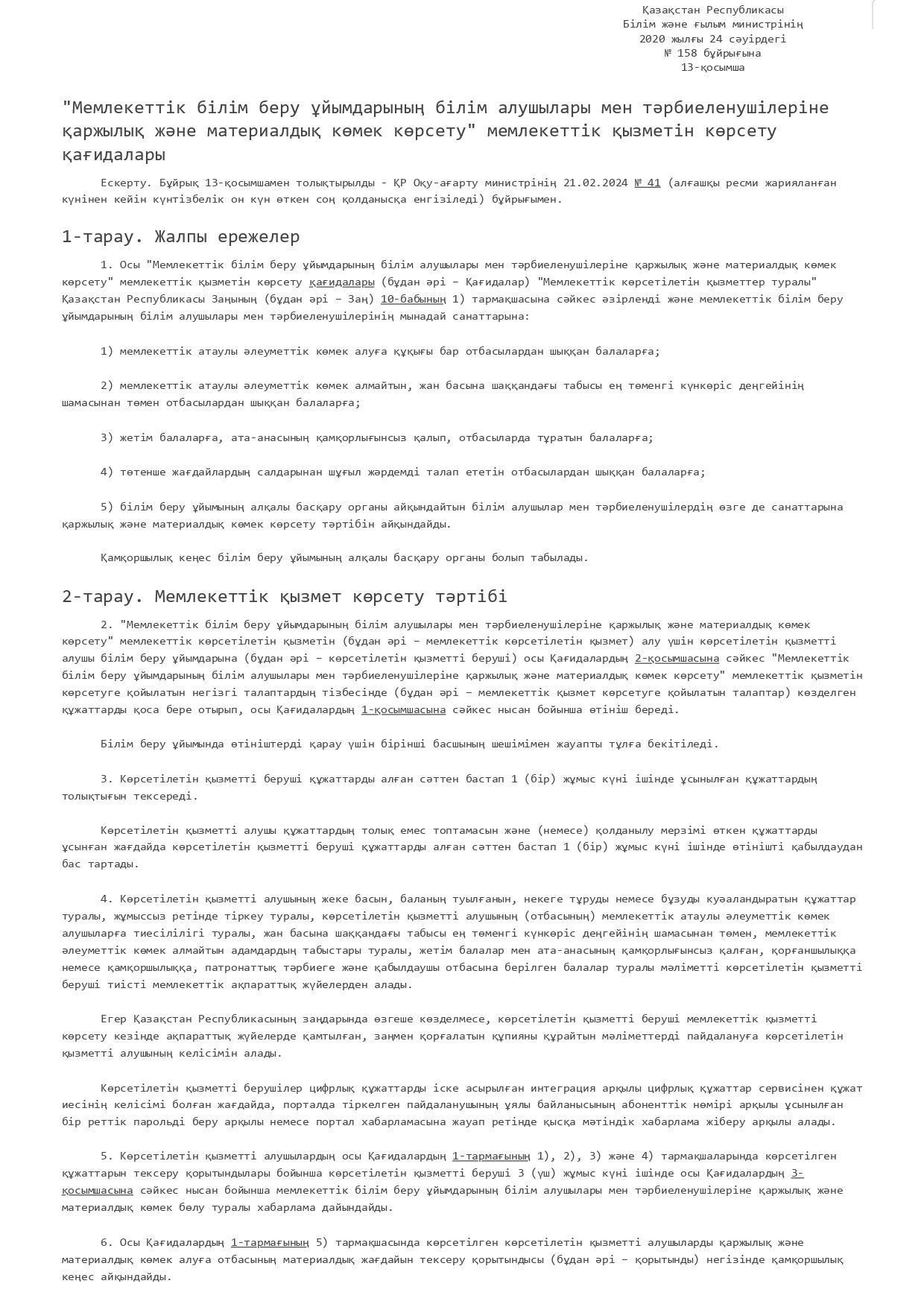01 сентябрь 2024 "Мемлекеттік білім беру ұйымдарының білім алушылары мен тәрбиеленушілеріне қаржылық және материалдық көмек көрсету" мемлекеттік қызметтер көрсету қағидалары Осы беттің QR-коды:QR-код этой страницы:
