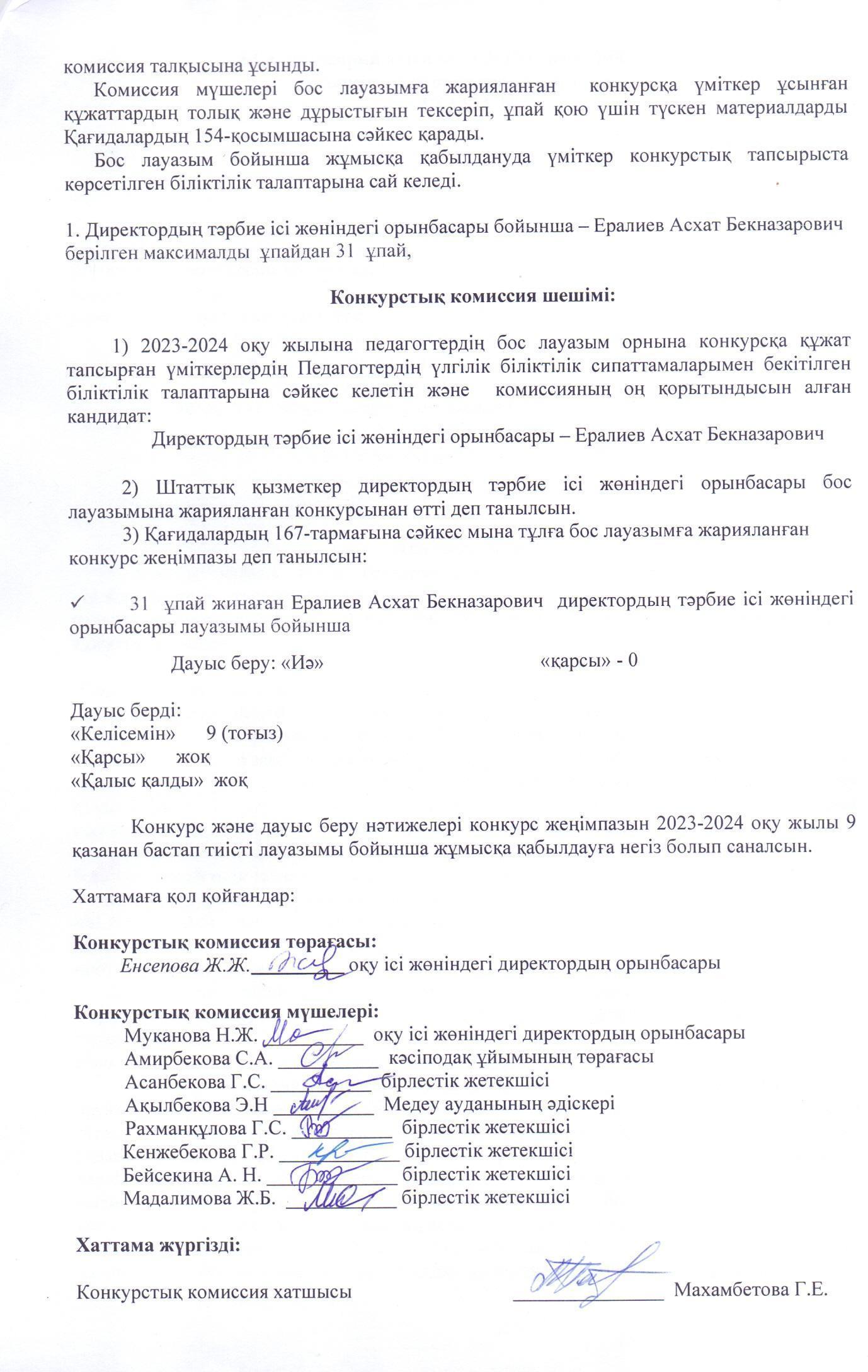09 октябрь 2023 Директордың тәрбие ісі жөніндегі бос лауазымы бойынша конкурс қорытындысының №4 хаттамасы Осы беттің QR-коды:QR-код этой страницы: