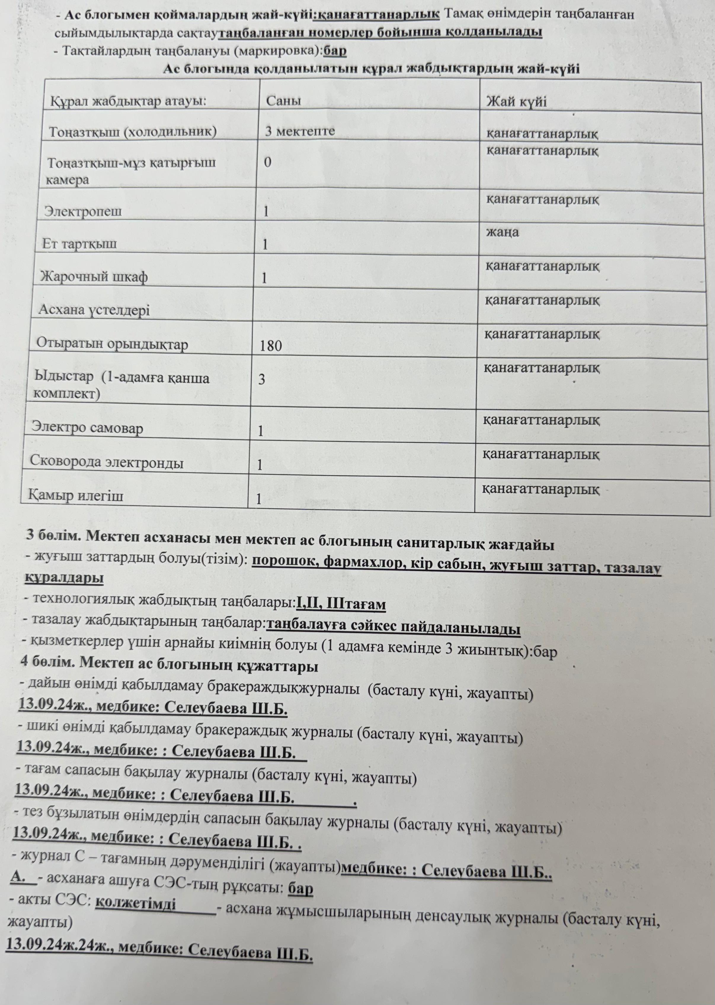 Бракеражды комиссияның қыркүйек айына мониторинг тексерісі