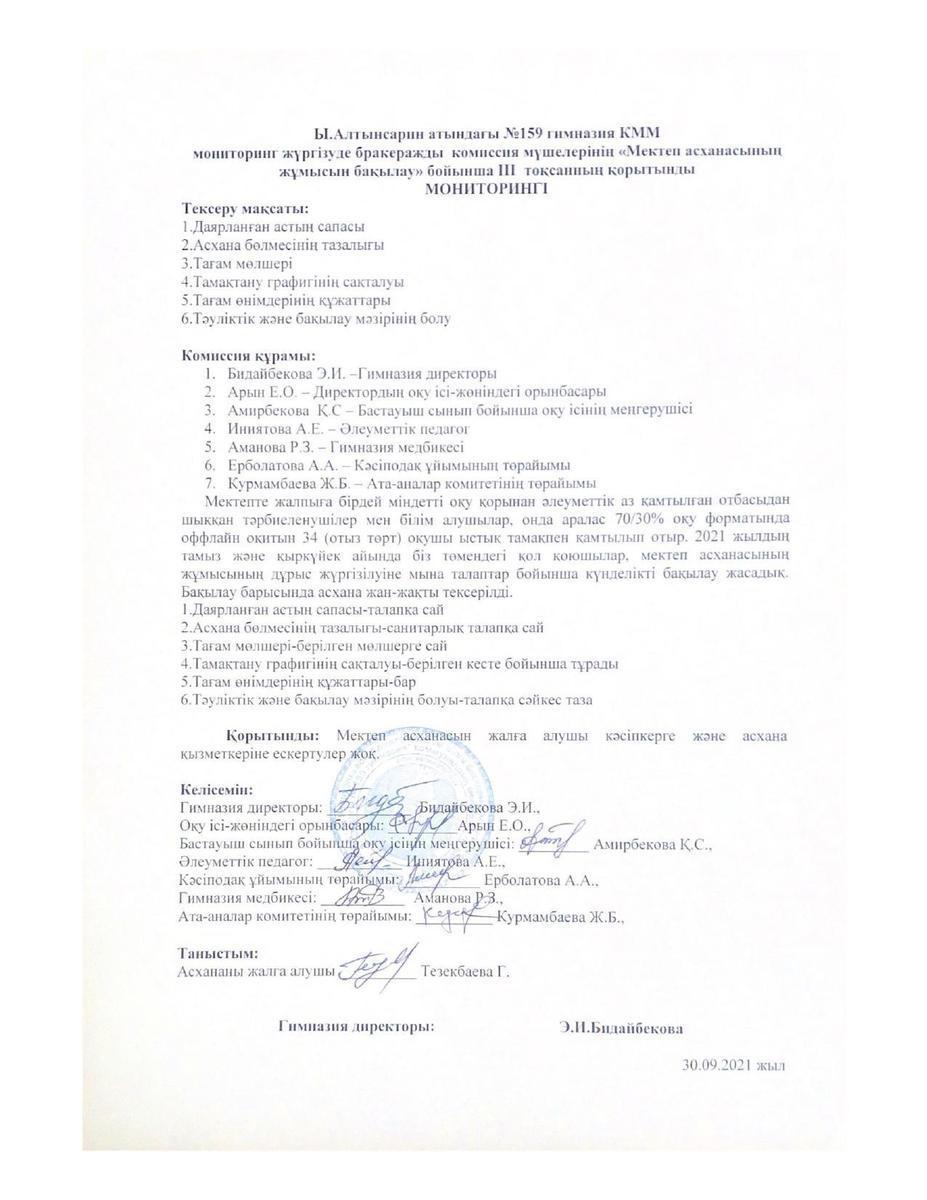 30 сентябрь 2021 Тамақтандыруды ұйымдастырудың сапасына жасалған ІІІ тоқсандық мониторинг 2021 Осы беттің QR-коды:QR-код этой страницы: