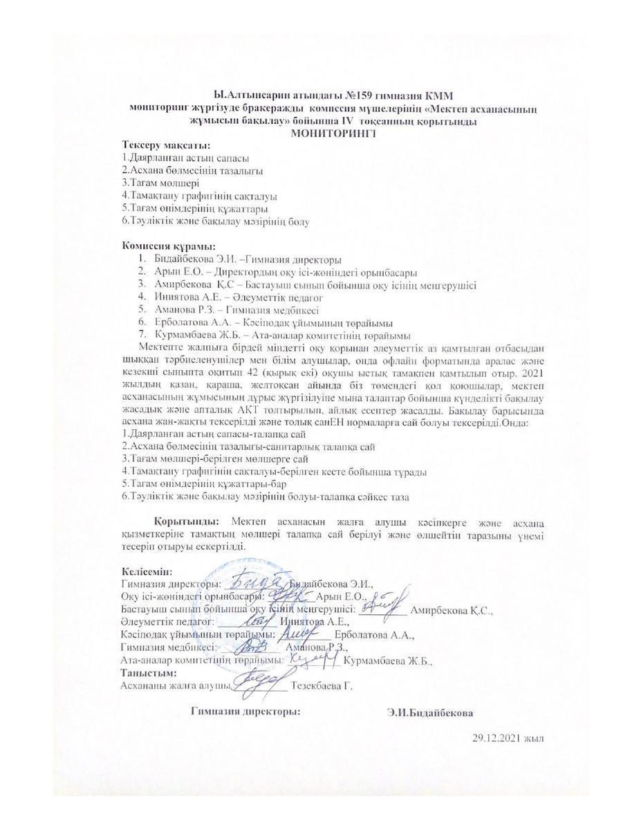 29 декабрь 2021 Тамақтандыруды ұйымдастырудың сапасына жасалған ІV тоқсандық мониторинг 2021 Осы беттің QR-коды:QR-код этой страницы: