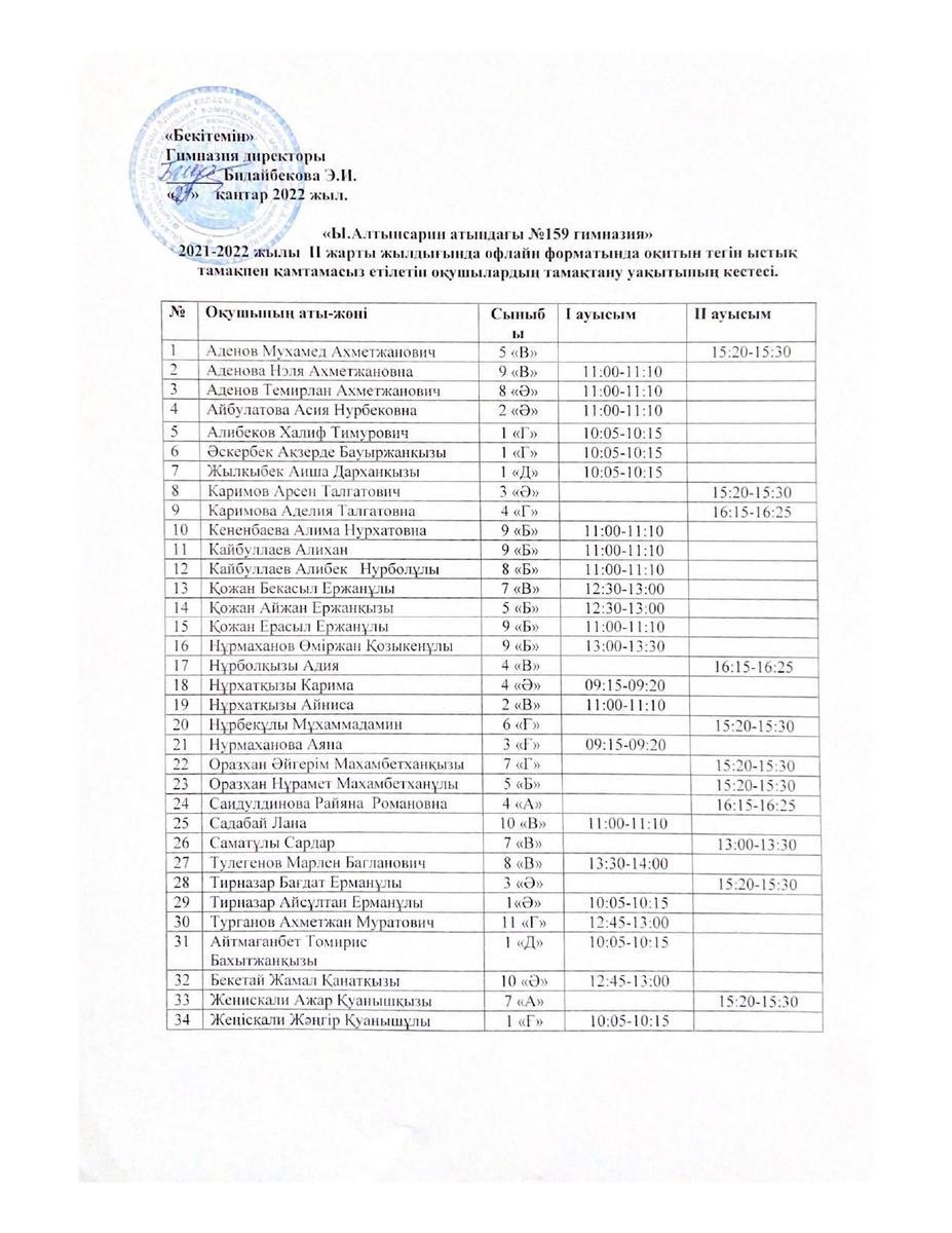 » Оқушылардың тамақтану кестесі 2022