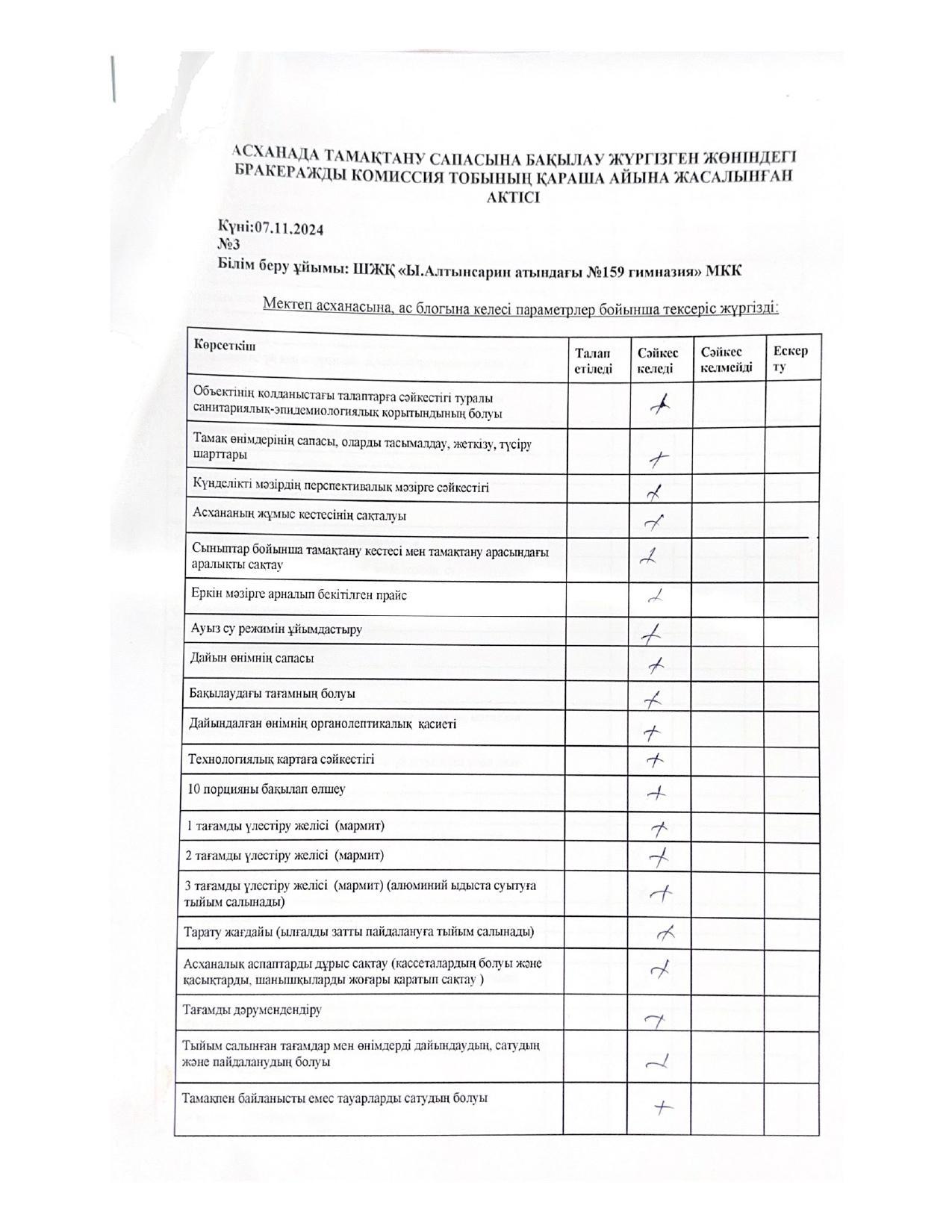 07 ноябрь 2024 0 1 2 3 4 5 Бракеражды комиссияның асхананы тексеру акты Қараша 2024 Осы беттің QR-коды:QR-код этой страницы: