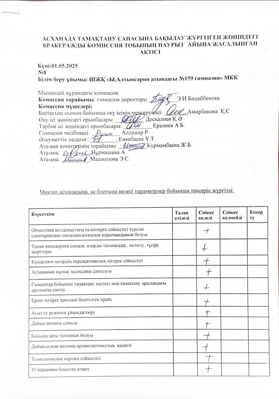 01 май 2025 0 1 2 3 4 5 Бракеражды комиссияның асхананы тексеру акты Мамыр 2025 Осы беттің QR-коды:QR-код этой страницы: